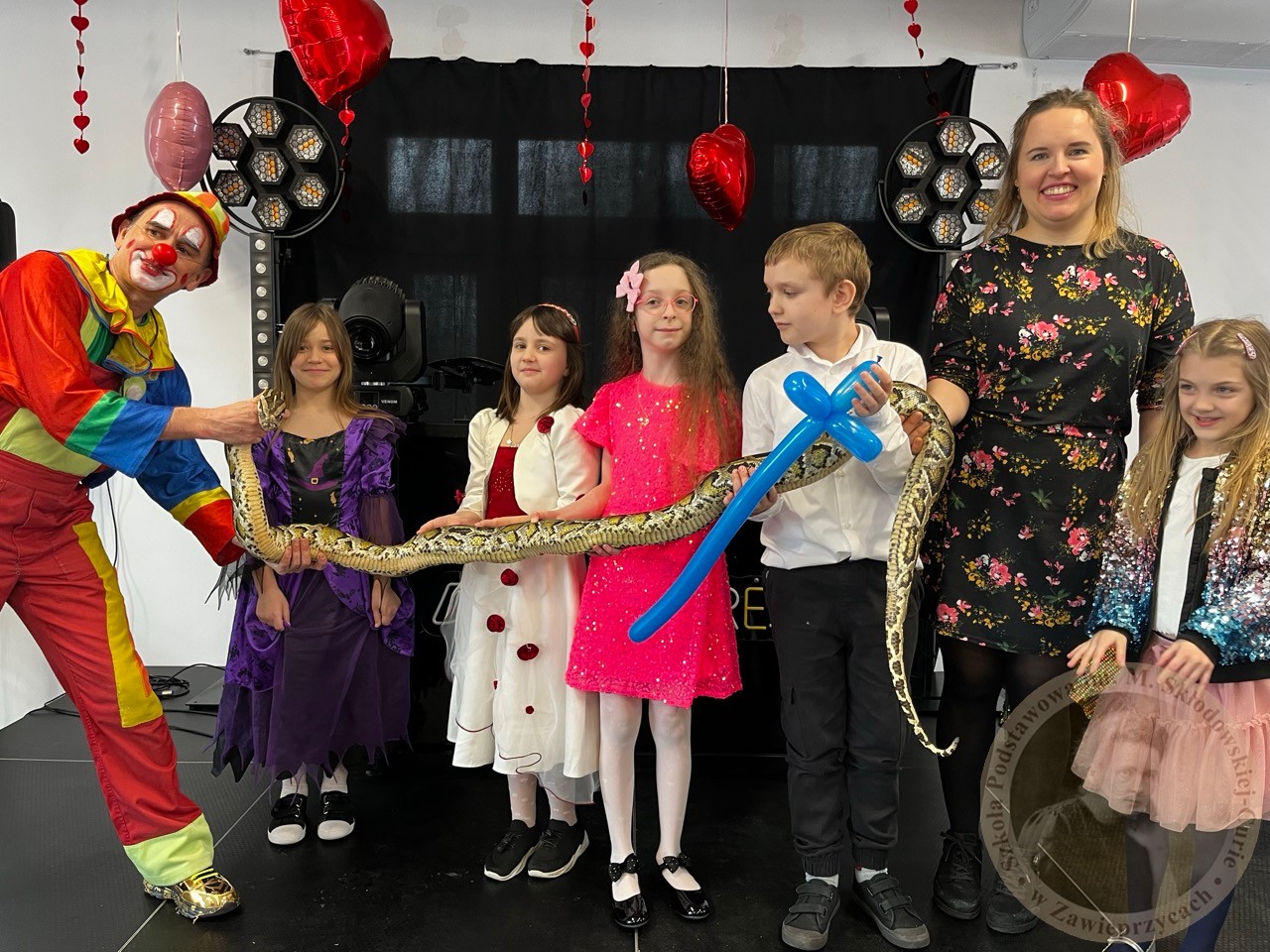 W tym roku skorzystaliśmy z uprzejmości Stajni Kultury w Zawieprzycach, gdzie odbyła się większość atrakcji przygotowanych na ten dzień. Spotkanie rozpoczęliśmy od niezwykłego widowiska w wykonaniu Cyrku Luna. Publiczność mogła podziwiać pokazy akrobatyczne oraz różnorodne sztuczki cyrkowe. Ogromną atrakcją okazał się wąż – dzieci i dorośli z entuzjazmem pozowali do zdjęć z pytonem na ramieniu. Nie zabrakło również warsztatów cyrkowych, podczas których nasi uczniowie mogli spróbować swoich sił w roli artystów i zaprezentować swoje umiejętności.