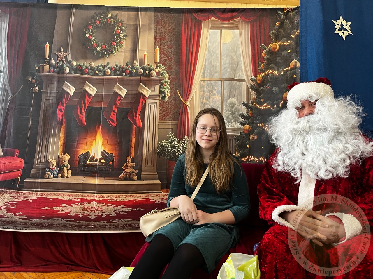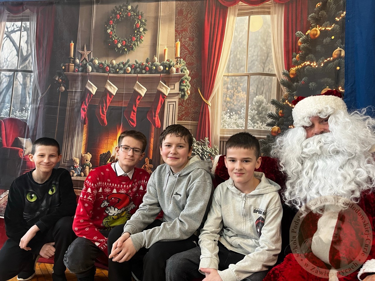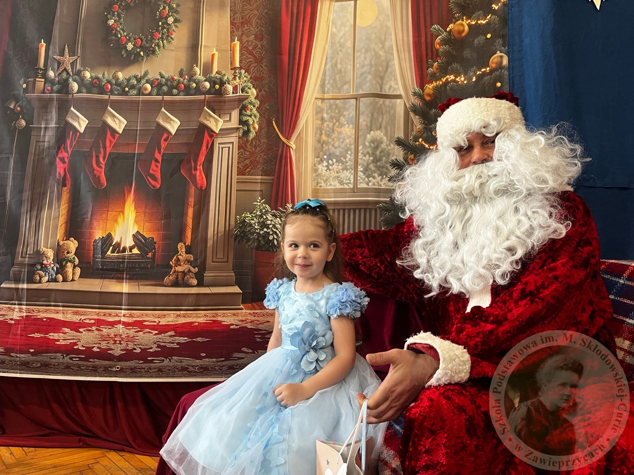 Następnie uczniowie, pod opieką nauczycieli i rodziców, przeszli do budynku szkoły na poczęstunek oraz spotkanie z kolejnym wyjątkowym gościem – Świętym Mikołajem, który wręczył dzieciom paczki pełne smakołyków. Radość i wzruszenie na twarzach najmłodszych były najlepszym dowodem na to, jak bardzo wyczekiwany był ten moment.