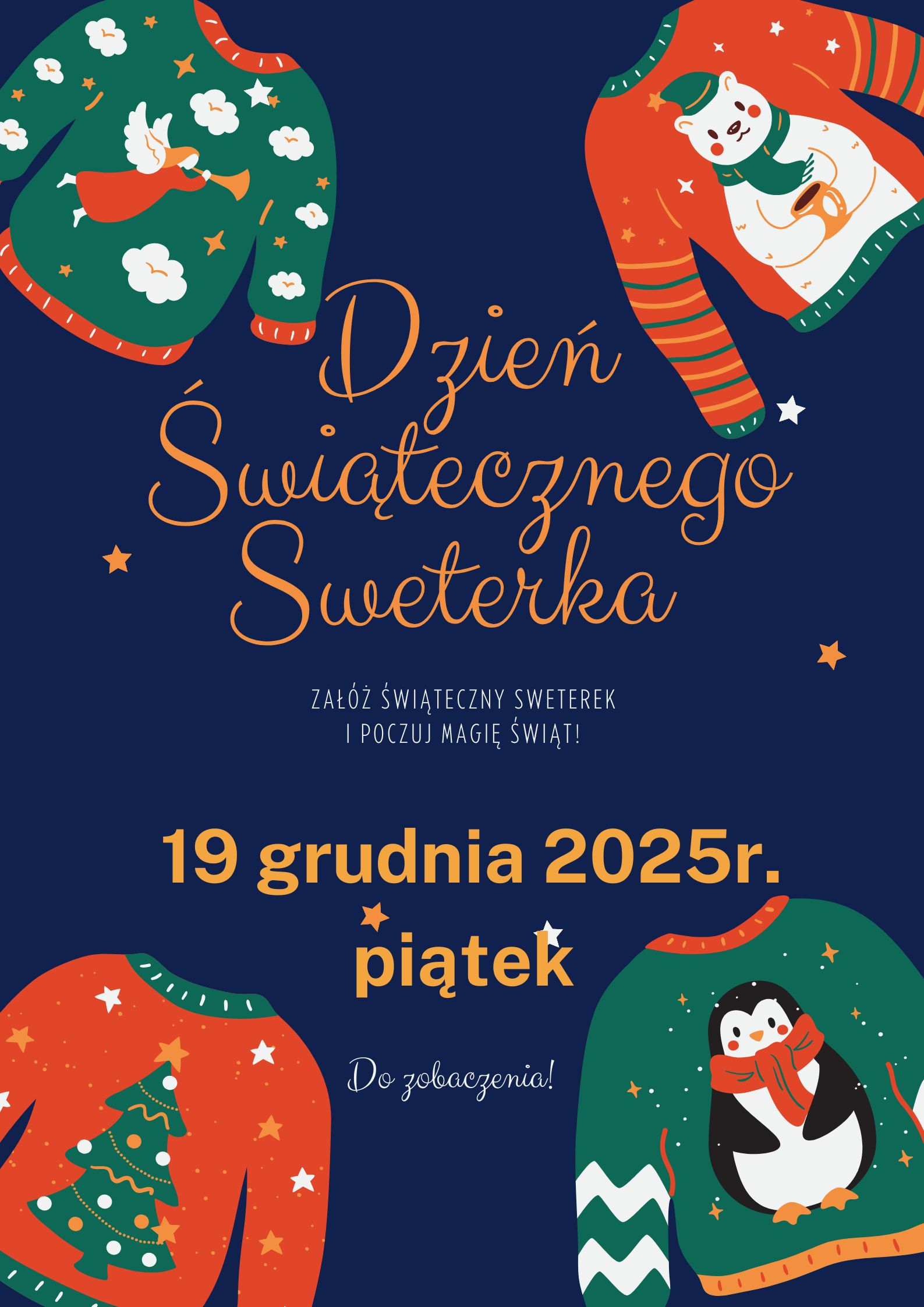 Podobnie jak w zeszłym roku samorząd szkolny zaprasza do udziału w Dniu Świątecznego Sweterka! Załóż świąteczny sweterek i poczuj magię świąt! Już w najbliższy piątek 19 grudnia. Do Zobaczenia!