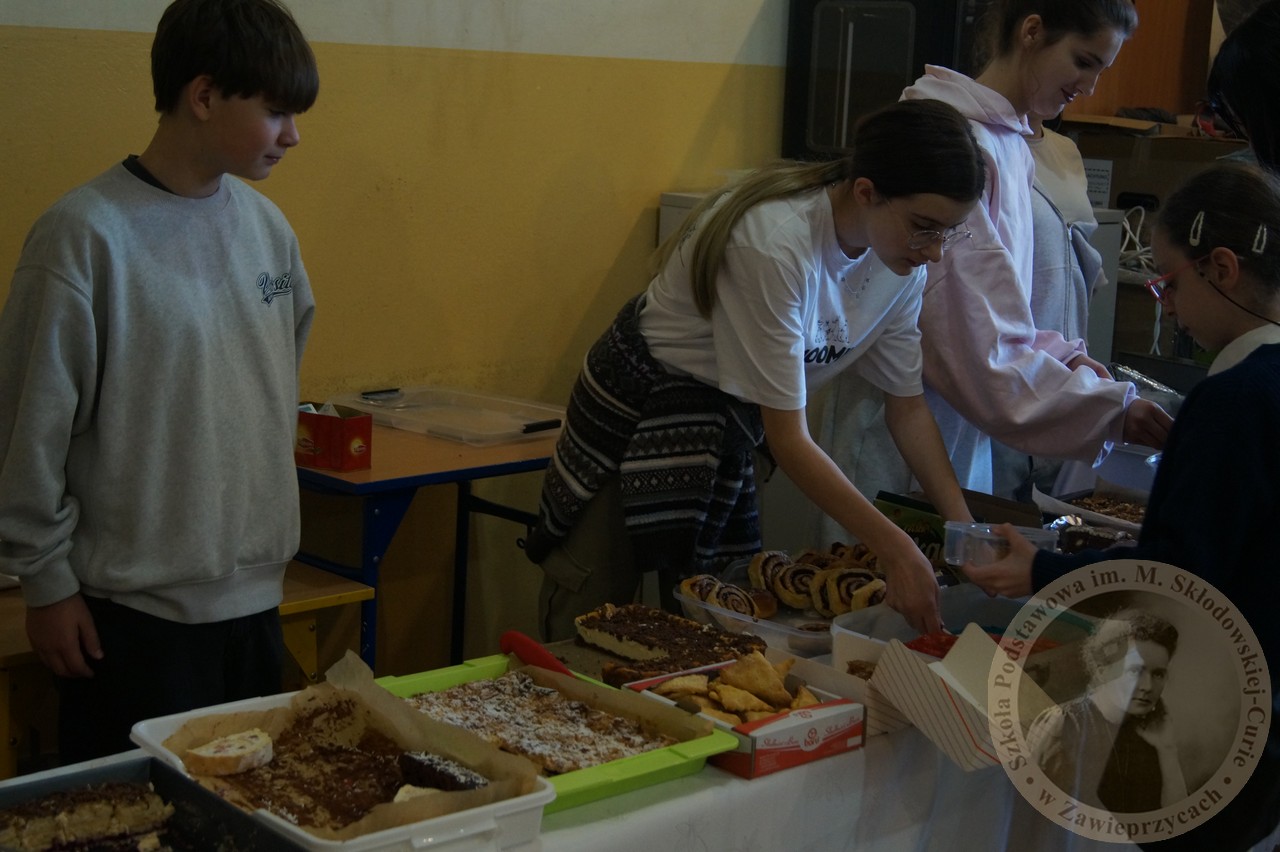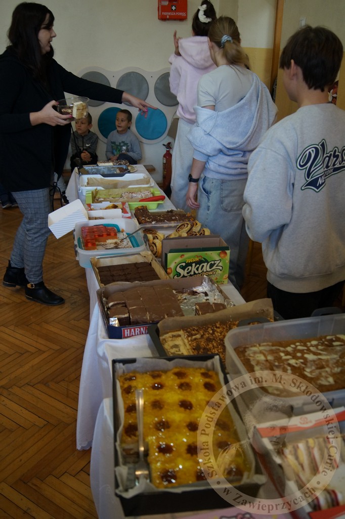 W dniu 22 października w naszej szkole odbył się kiermasz ciast. Dochód z kiermaszu zostanie przeznaczony na działania samorządu uczniowskiego, między innymi na nagrody w konkursach, które chce zorganizować w tym roku szkolnym samorząd. Pierwszy konkurs już niedługo, ponieważ 5 listopada jest Dzień Postaci z Bajek. Szczegóły już niebawem, a my już dzisiaj zachęcamy do czynnego udziału uczniów w konkursie. Dziękujemy rodzicom za pyszne ciasta dostarczone na kiermasz. Podczas kiermaszu Samorząd Szkolny uzbierał kwotę 848,60zł.