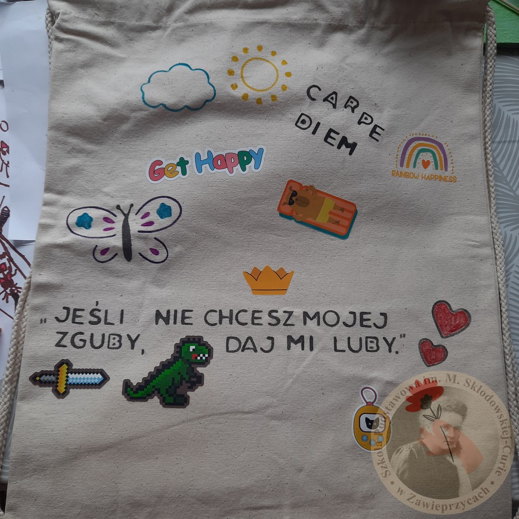 Uczniowie klasy siódmej w miniony piątek świętowali Dzień Chłopaka. Razem z wychowawczynią Kamilą Pierożkiewicz zaprojektowali swoje worko-plecaki. Kreatywność uczniów przeszła najśmielsze oczekiwania. Wszyscy świetnie się bawili. Mamy nadzieję, że worki posłużą nam długi czas.