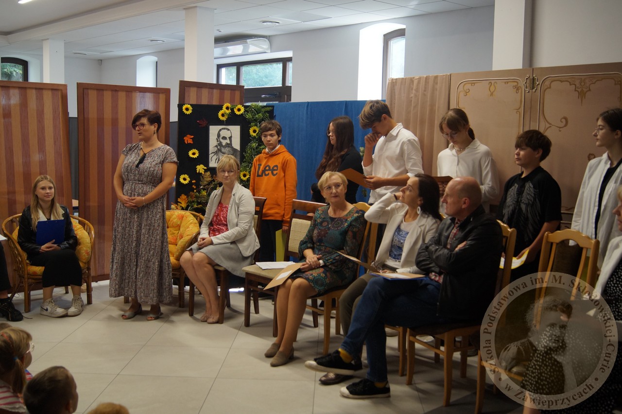 Dnia 10 września 2025 roku w naszej szkole odbyło się wyjątkowe wydarzenie – Narodowe Czytanie utworów Jana Kochanowskiego, wielkiego poety epoki renesansu, który uznawany jest za ojca literatury polskiej. W wydarzeniu wzięli udział uczniowie klas I–VIII,p. Dyrektor Jolanta Mackiewicz, nauczyciele oraz zaproszeni goście – pan Marek Chudzik, dyrektor GCK w Ziółkowie oraz p. Dorota Matyjaszczyk, dyrektor GBP w Spiczynie.
