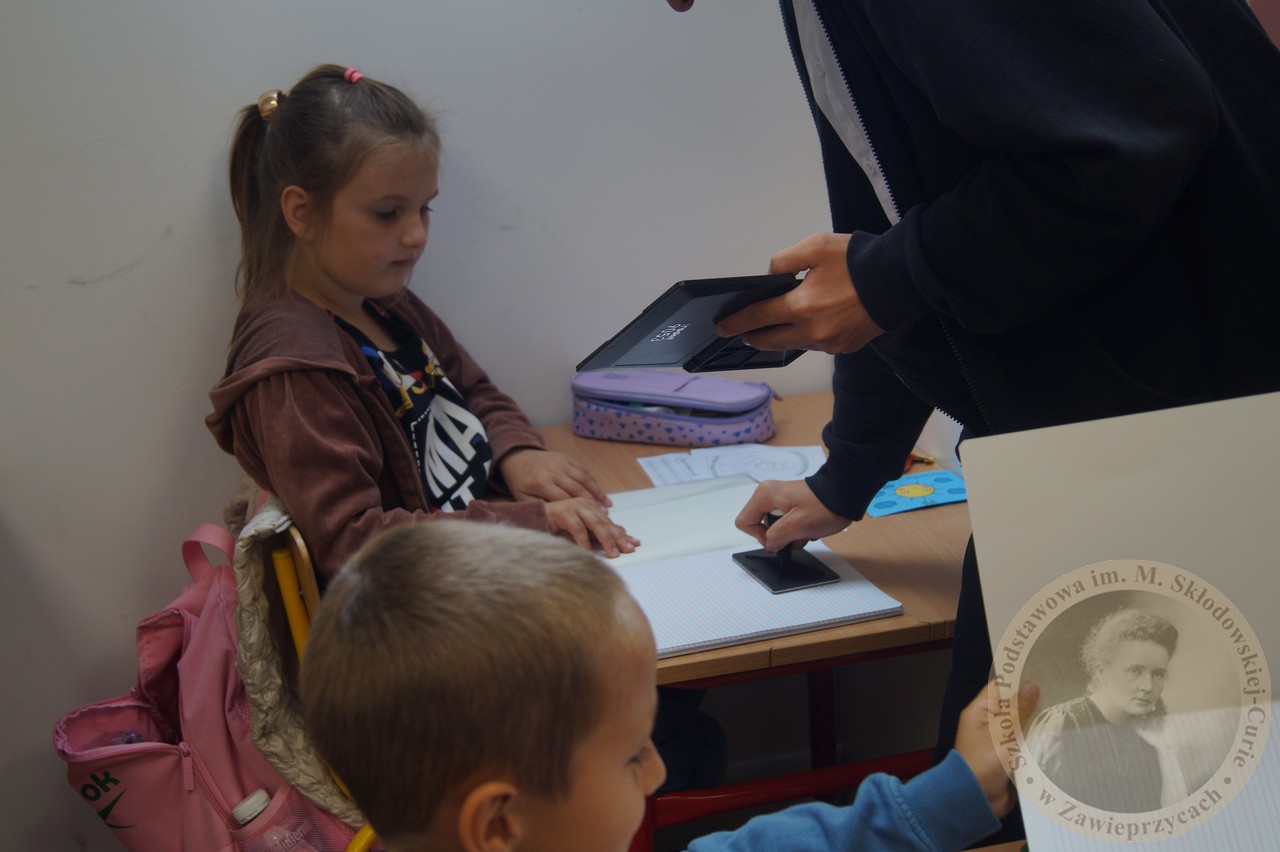 W drugiej części spotkania uczniowie klas młodszych zmierzyli się z ćwiczeniami kaligraficznymi – przepisywali fraszki, a także kolorowali wizerunek ojca polskiej poezji. Starsi uczniowie, podzieleni na grupy, tropili fraszki na terenie parku – wzięli udział w grze terenowej, która ćwiczyła znajomość i rozumienie tekstów poetyckich. Wszyscy uczniowie tradycyjnie otrzymali pieczątki upamiętniające to wydarzenie.