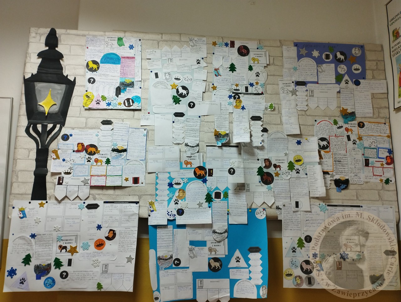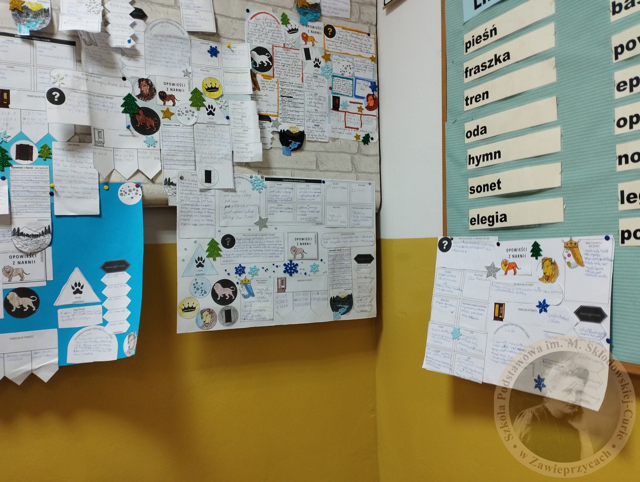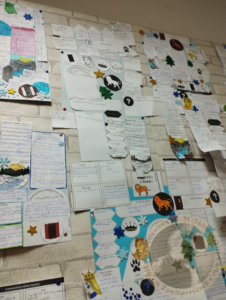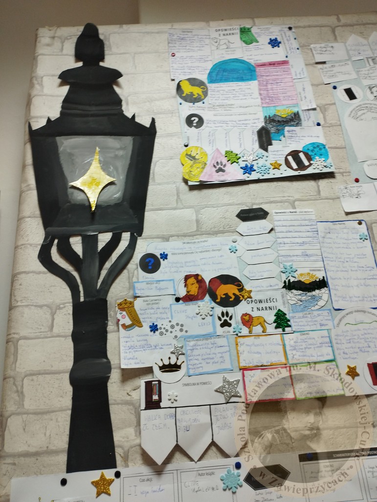 W sali numer 9 pojawiły się ostatnio dwie piękne gazetki ścienne, wykonane przez klasę V podczas lekcji języka polskiego poświęconych lekturze „Opowieści z Narnii. Lew, Czarownica i stara szafa”.