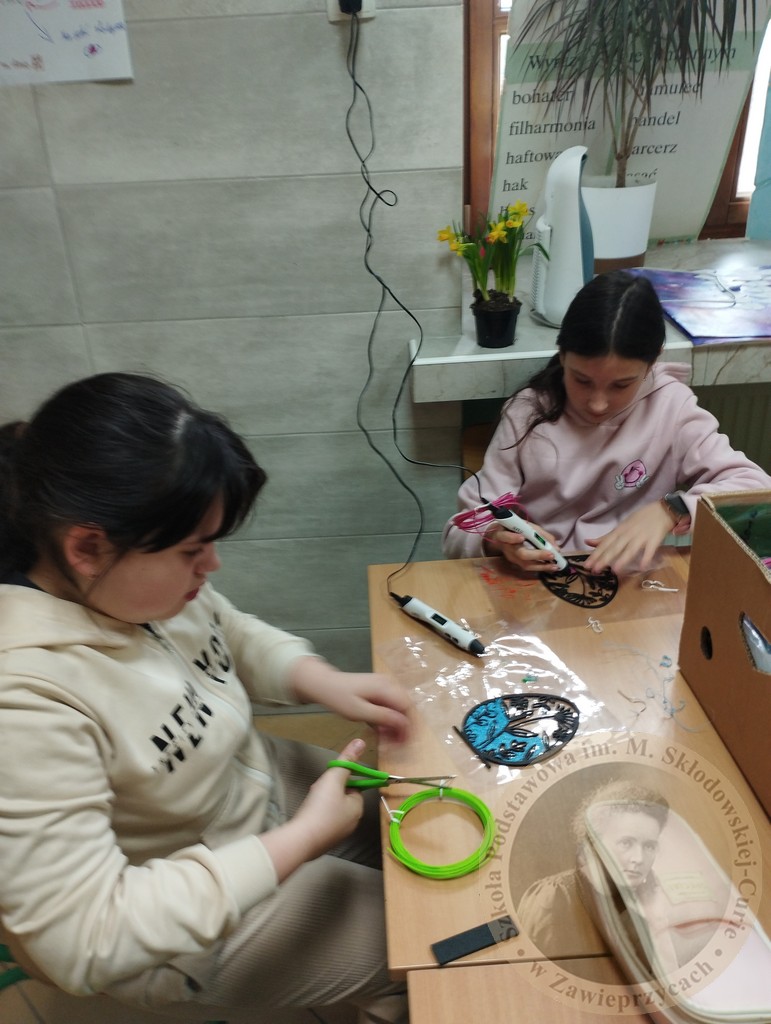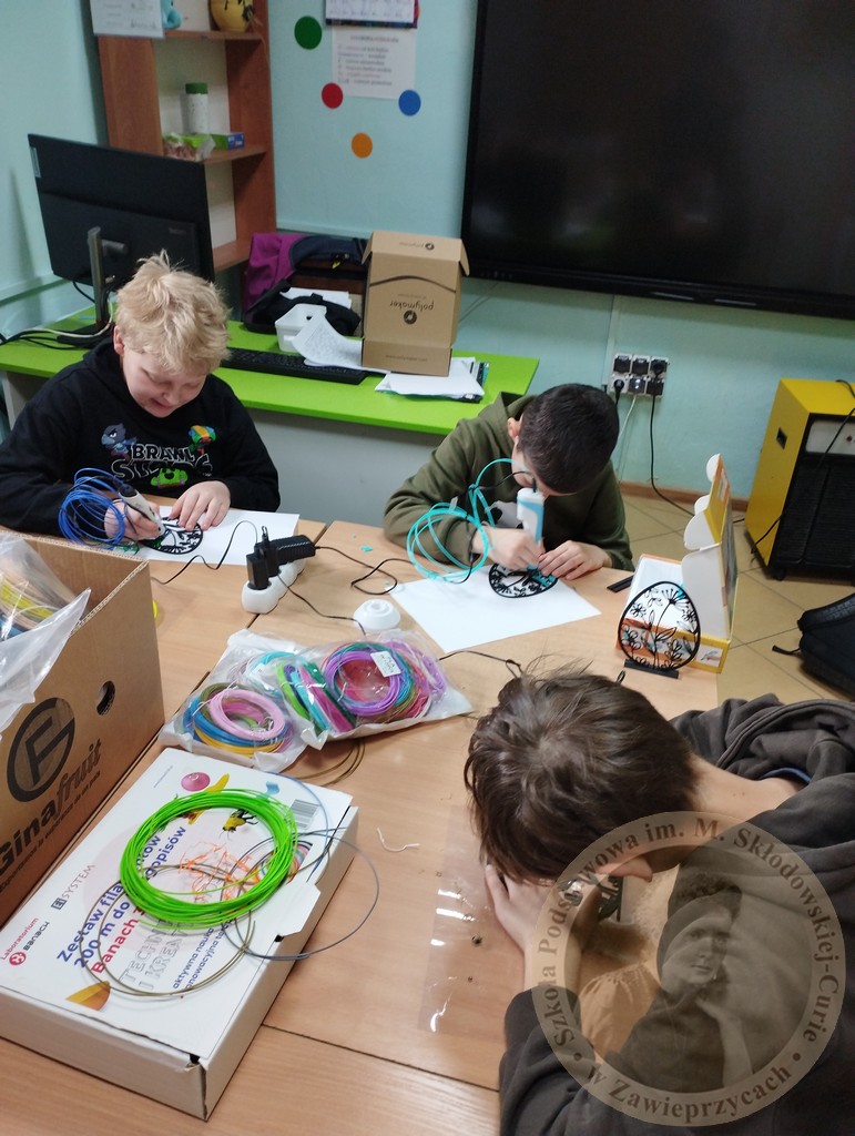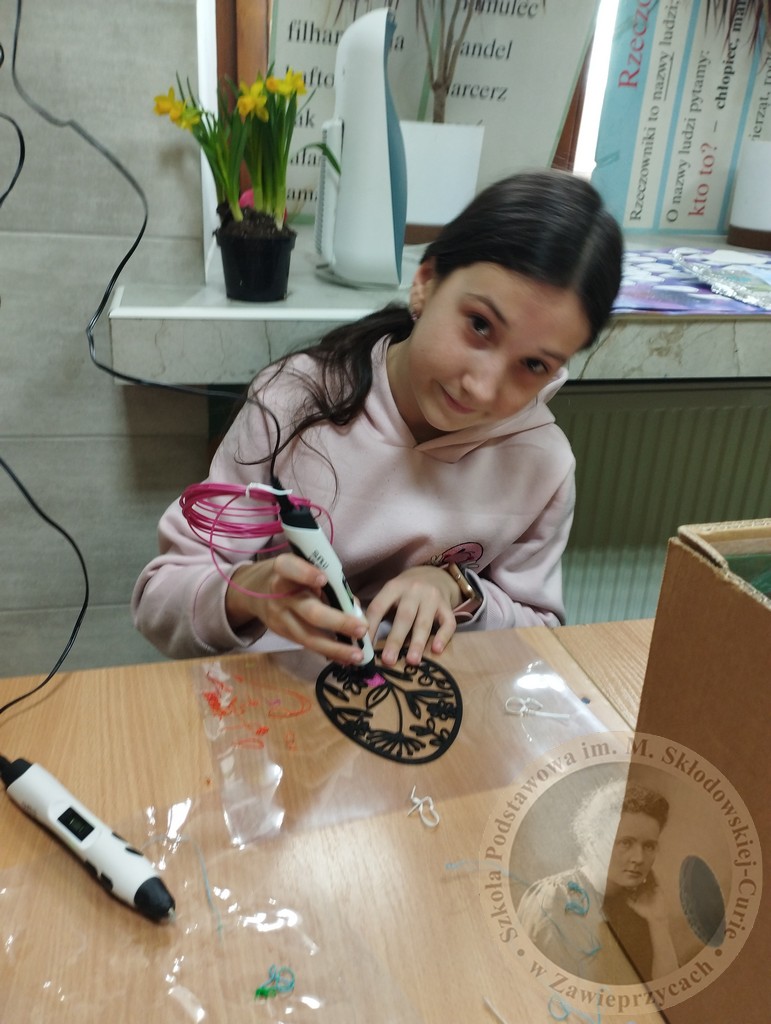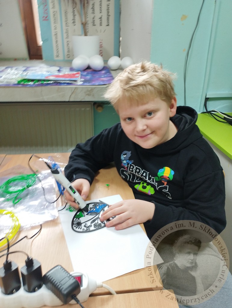 Zamiast tradycyjnych farbek, czwartoklasiści sięgnęli po długopisy 3D oraz drukarkę 3D, by stworzyć jedyne w swoim rodzaju, ażurowe pisanki. Praca z tak nowoczesnym sprzętem to nie tylko świetna zabawa, ale przede wszystkim: