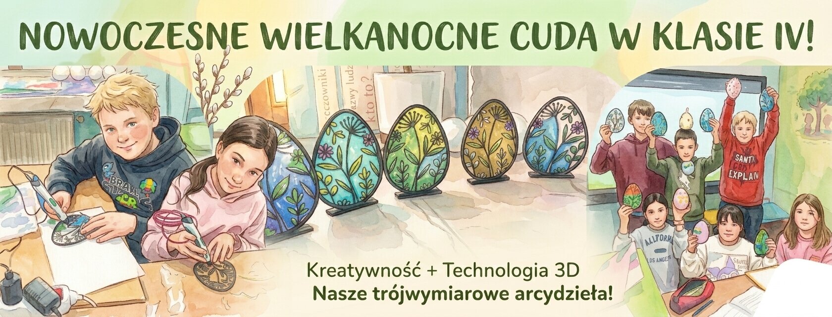 W naszej szkole tradycja spotyka się z nowoczesnością! W ostatnich dniach uczniowie klasy IV, pod opieką wychowawcy oraz nauczyciela plastyki, zamienili swoją salę w prawdziwe laboratorium technologii i sztuki.