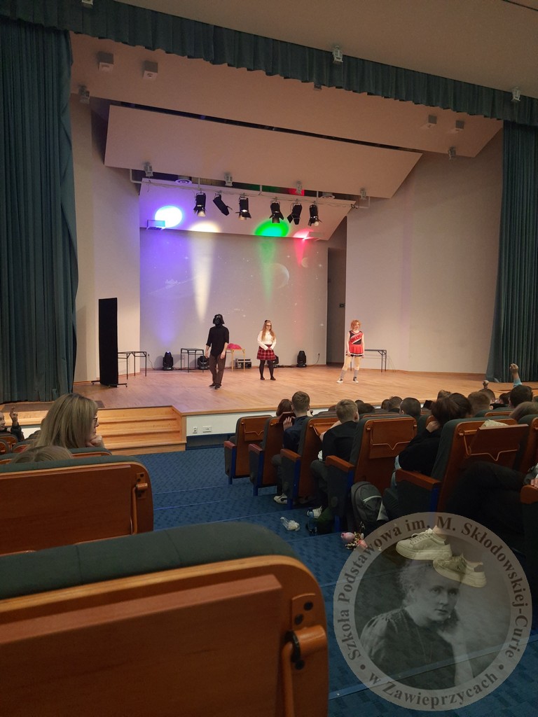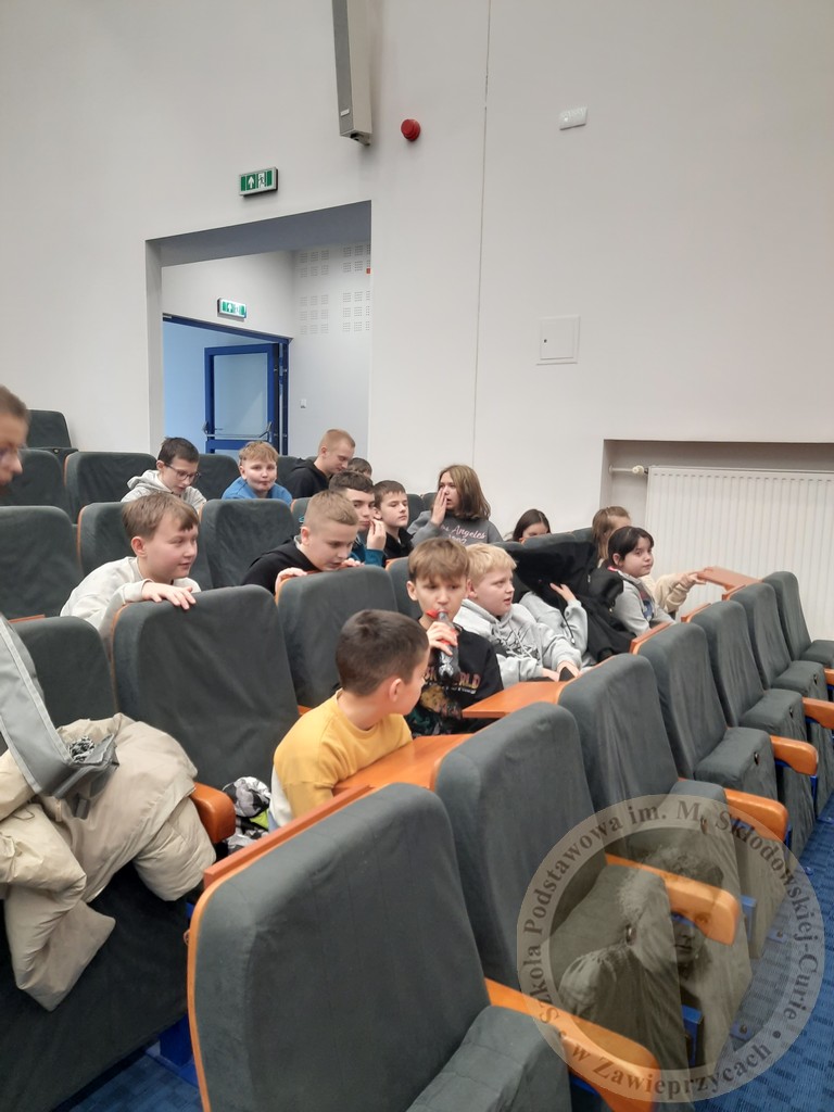 Następnie klasy 1-3 udały się na bardzo ciekawy film do kina, a uczniowie starsi – w ramach Teatralnej Wiosny – na interaktywny spektakl „Zebranie”, podczas którego musieliśmy zdecydować, który występujący tam uczeń-aktor był winny złego zachowania w szkole. Zagadka nie była łatwa, gdyż z 4 podejrzanych osób… wszyscy się przyznali do popełnienia złego czynu. Zadaniem zgromadzonej publiczności było określić, kto mówi nieprawdę. Zabawa była świetna. Wszyscy byli bardzo zaangażowani. Na sali był las rąk chętnych do odpowiedzi… Wycieczka była bardzo udana.