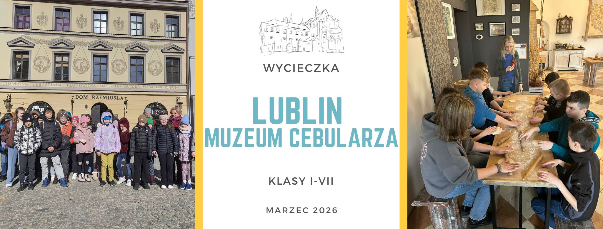 We czwartek uczniowie naszej szkoły wybrali się do Lublina. Na początku zwiedziliśmy Stare Miasto, zobaczyliśmy Ratusz Miejski i zabytkowe kamienice oraz Plac Po Farze. Następnie udaliśmy się na warsztaty do Regionalnego Muzeum Cebularza. Tam poznaliśmy legendę powstania tego pysznego wypieku, tajemniczą recepturę na jego przygotowanie i zobaczyliśmy, jak krok po kroku go wykonać, a potem samodzielnie zrobiliśmy swojego cebularza. Wyszły przepyszne.